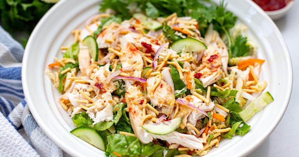 Looking for a quick and easy dinner option that doesn’t require cooking? Try this Asian-inspired chicken salad! It’s perfect for hot summer nights or when you just don’t feel like turning on the stove.