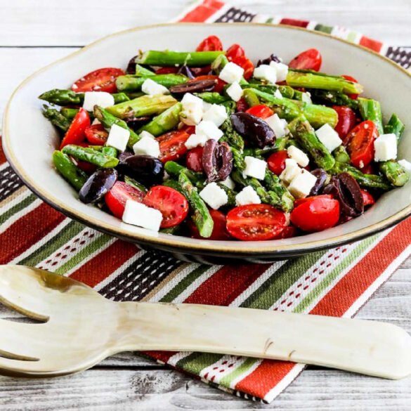 This tasty salad with Greek flavors and asparagus was first posted in 2009. It was last updated with more information in 2024.