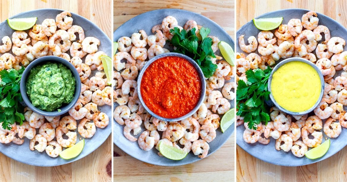 • You can plate the cooked shrimp on a large platter with all three sauces or pick one of the sauces and go with that.