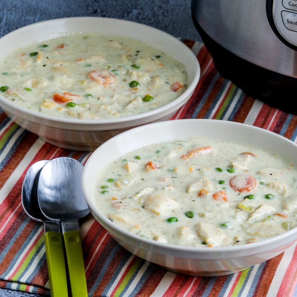 When my fantastic assistant and niece Kara and I decided to try making a low-carb version of Instant Pot Chicken Pot Pie Soup we made it a few times before we felt like we had perfected the recipe. And each time we made it we shared the soup with family and friends, and everyone who tried it thought the Chicken Pot Pie Soup was absolutely delicious.