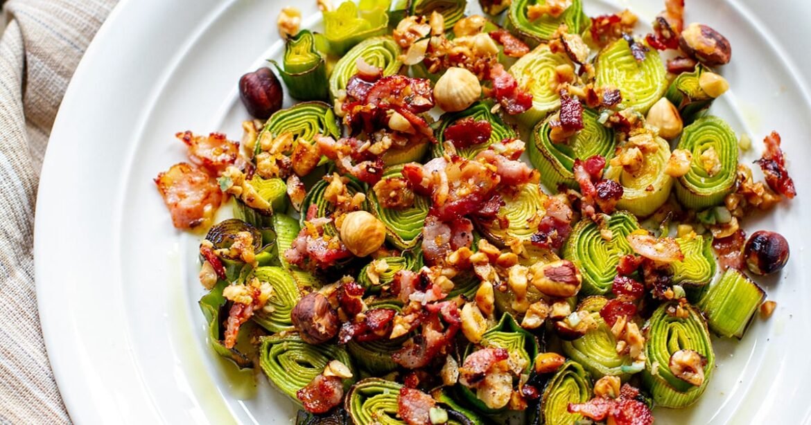 Home Healthy Roasted Leeks With Bacon & Hazelnuts – Irena Macri