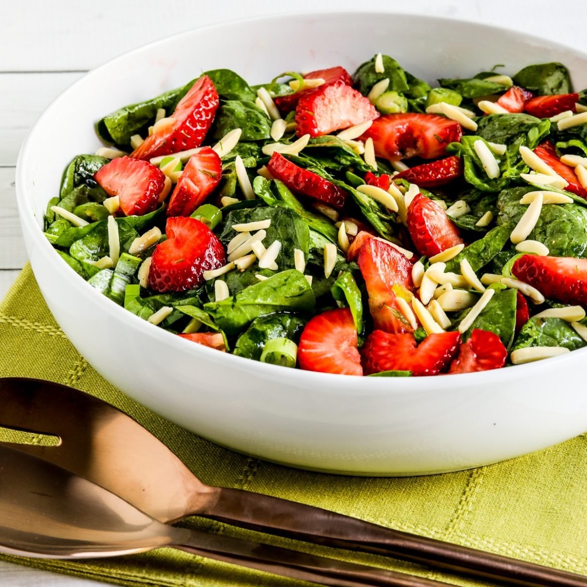 When it’s made with an approved sweetener, this Strawberry Spinach Salad is surprisingly low in net carbs so it could work as a special-occasion salad for low-carb diets, but probably not for Keto. It would also be a good option for phase 2 or 3 of the original South Beach Diet.